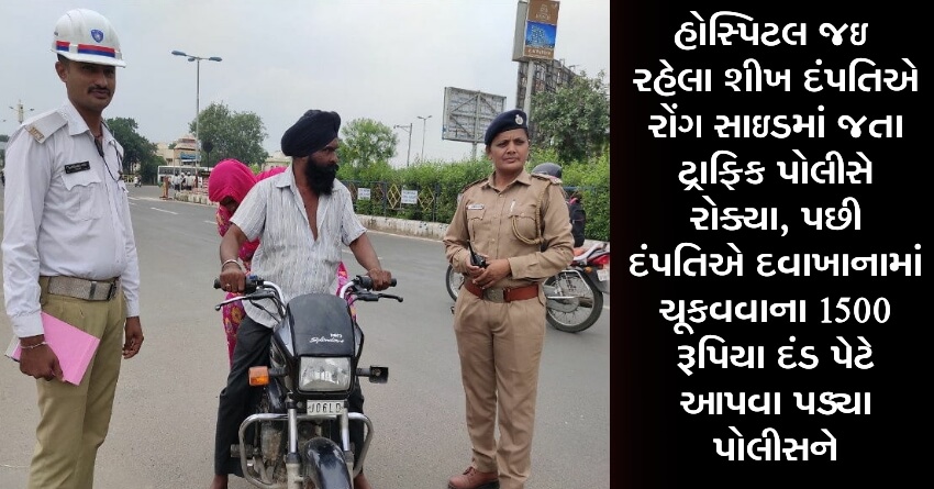 હોસ્પિટલ જઇ રહેલા શીખ દંપતિએ રોંગ સાઇડમાં જતા ટ્રાફિક પોલીસે રોક્યા, પછી દંપતિએ દવાખાનામાં ચૂકવવાના 1500 રૂપિયા દંડ પેટે આપવા પડ્યા પોલીસને