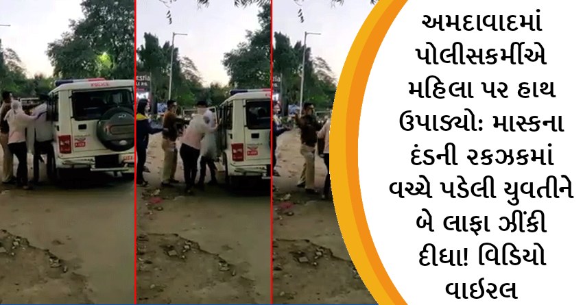 અમદાવાદમાં પોલીસકર્મીએ મહિલા પર હાથ ઉપાડ્યો: માસ્કના દંડની રકઝકમાં વચ્ચે પડેલી યુવતીને બે લાફા ઝીંકી દીધા! વિડિયો વાઇરલ