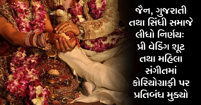 જૈન, ગુજરાતી તથા સિંધી સમાજે લીધો નિર્ણય: પ્રી વેડિંગ શૂટ તથા મહિલા સંગીતમાં કોરિયોગ્રાફી પર પ્રતિબંધ મુક્યો
