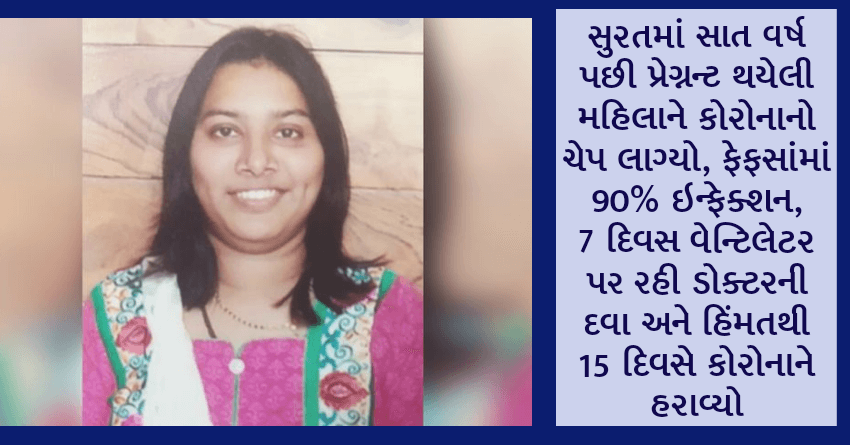 સુરતમાં સાત વર્ષ પછી પ્રેગ્નન્ટ થયેલી મહિલાને કોરોનાનો ચેપ લાગ્યો, ફેફસાંમાં 90% ઇન્ફેક્શન, 7 દિવસ વેન્ટિલેટર પર રહી ડોક્ટરની દવા અને હિંમતથી 15 દિવસે કોરોનાને હરાવ્યો