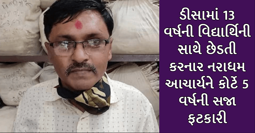 ડીસામાં 13 વર્ષની વિદ્યાર્થિની સાથે છેડતી કરનાર નરાધમ આચાર્યને કોર્ટે 5 વર્ષની સજા ફટકારી