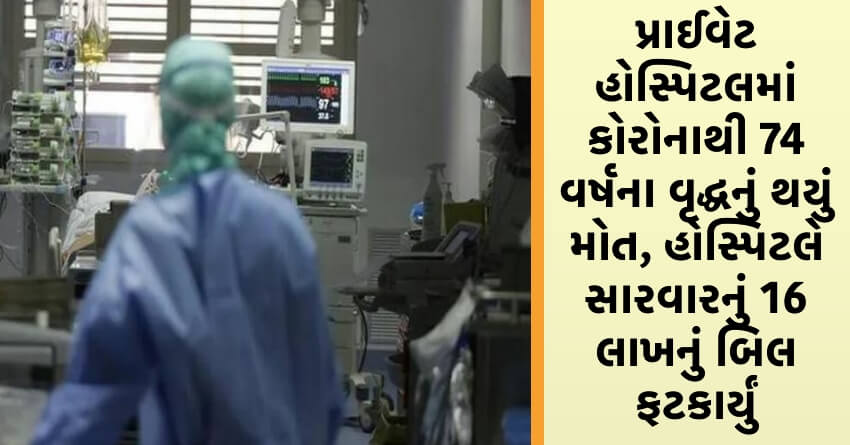 પ્રાઈવેટ હોસ્પિટલમાં કોરોનાથી 74 વર્ષના વૃદ્ધનું થયું મોત, હોસ્પિટલે સારવારનું 16 લાખનું બિલ ફટકાર્યું