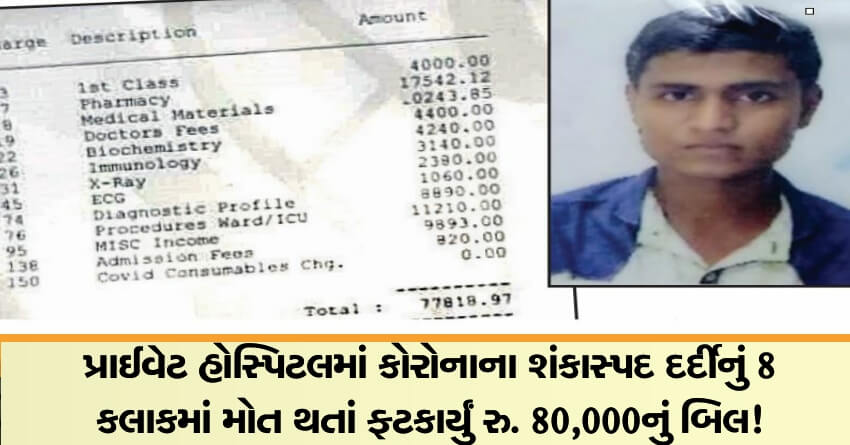 પ્રાઈવેટ હોસ્પિટલમાં કોરોનાના શંકાસ્પદ દર્દીનું 8 કલાકમાં મોત થતાં ફટકાર્યું રુ. 80,000નું બિલ! કોરોનાની ટ્રીટમેન્ટના નામે લૂંટ ચલાવી રહી છે પ્રાઈવેટ હોસ્પિટલો?