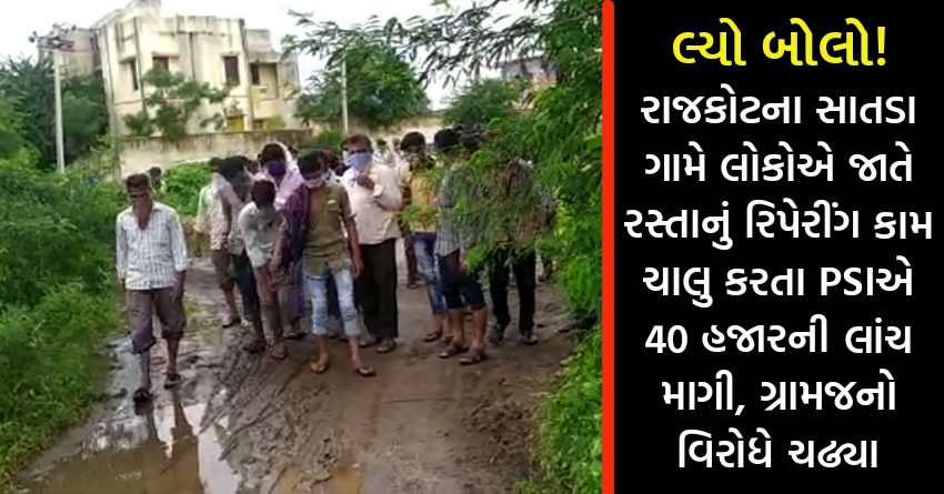 લ્યો બોલો! રાજકોટના સાતડા ગામે લોકોએ જાતે રસ્તાનું રિપેરીંગ કામ ચાલુ કરતા PSIએ 40 હજારની લાંચ માગી, ગ્રામજનો વિરોધે ચઢ્યા