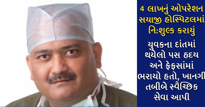 4 લાખનું ઓપરેશન સયાજી હોસ્પિટલમાં નિ:શુલ્ક કરાયું : યુવકના દાંતમાં થયેલો પસ હૃદય અને ફેફસાંમાં ભરાયો હતો, ખાનગી તબીબે સ્વૈચ્છિક સેવા આપી