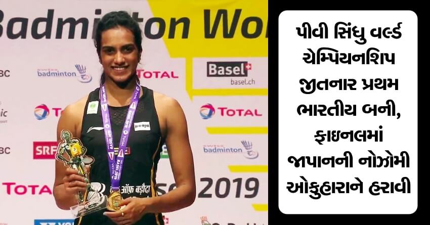 ભારતની સ્ટાર શટલર પીવી સિંધુ જાપાનની નોઝોમી ઓકુહારાને હરાવીને BWF વર્લ્ડ ચેમ્પિયનશિપ જીતનાર પ્રથમ ભારતીય બની છે. 24 વર્ષીય સિંધુએ ઓકુહારાને સતત બે ગેમમાં 21-7, 21-7થી હરાવી હતી. તેણે છઠીવાર સ્પર્ધામાં ભાગ લીધો હતો અને પાંચ મેડલ સાથે તે ભારતની સૌથી સફળ શટલરબની ગઈ છે. તે 2013 અને 2014 બ્રોન્ઝ મેડલ જીતી હતી, જયારે 2017 અને 2018માં સિલ્વર મેડલ જીતી હતી. સતત બે વાર ફાઇનલમાં હારનો સામનો કર્યા પછી છેવટે સિંધુએગોલ્ડ મેડલ જીત્યો છે.