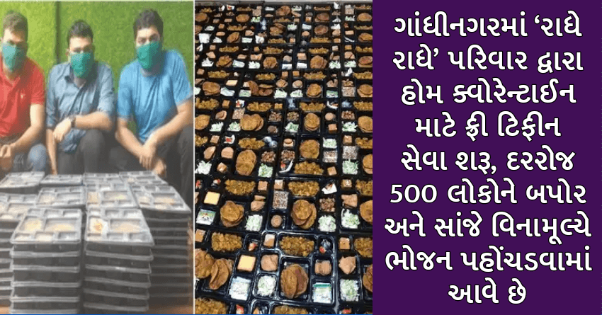 ગાંધીનગરમાં ‘રાધે રાધે’ પરિવાર દ્વારા હોમ ક્વોરેન્ટાઈન માટે ફ્રી ટિફીન સેવા શરૂ, દરરોજ 500 લોકોને બપોર અને સાંજે વિનામૂલ્યે ભોજન પહોંચડવામાં આવે છે