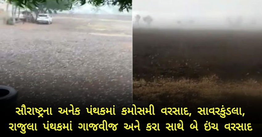 સૌરાષ્ટ્રના અનેક પંથકમાં કમોસમી વરસાદ, સાવરકુંડલા, રાજુલા પંથકમાં ગાજવીજ અને કરા સાથે બે ઇંચ વરસાદ
