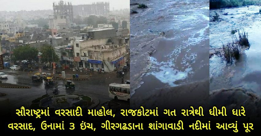 સૌરાષ્ટ્રમાં વરસાદી માહોલ, રાજકોટમાં ગત રાત્રેથી ધીમી ધારે વરસાદ, ઉનામાં 3 ઇંચ, ગીરગઢડાના શાંગાવાડી નદીમાં આવ્યું પૂર