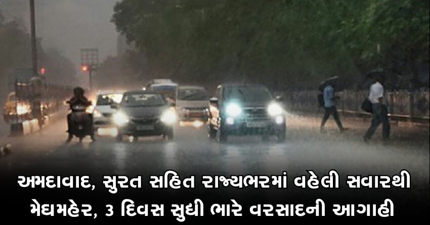 અમદાવાદ, સુરત સહિત રાજ્યભરમાં વહેલી સવારથી મેઘમહેર, 3 દિવસ સુધી ભારે વરસાદની આગાહી
