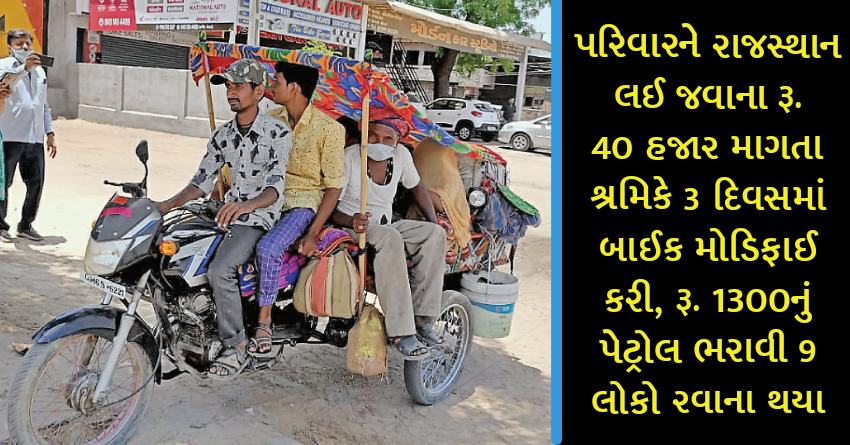 પરિવારને રાજસ્થાન લઈ જવાના રૂ. 40 હજાર માગતા શ્રમિકે 3 દિવસમાં બાઈક મોડિફાઈ કરી, રૂ. 1300નું પેટ્રોલ ભરાવી 9 લોકો રવાના થયા