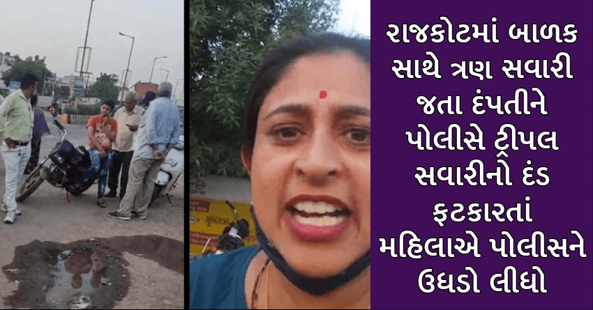 રાજકોટમાં બાળક સાથે ત્રણ સવારી જતા દંપતીને પોલીસે ટ્રીપલ સવારીનો દંડ ફટકારતાં મહિલાએ પોલીસને ઉધડો લીધો