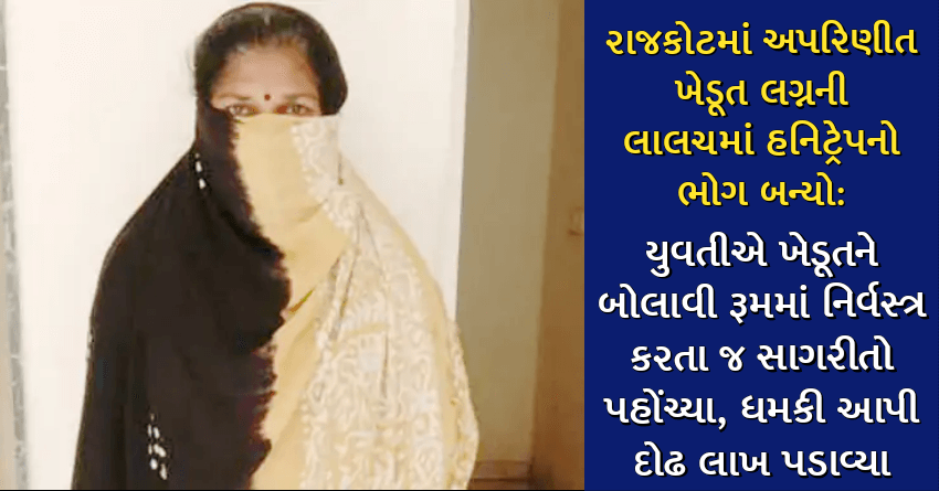 રાજકોટમાં અપરિણીત ખેડૂત લગ્નની લાલચમાં હનિટ્રેપનો ભોગ બન્યો: યુવતીએ ખેડૂતને બોલાવી રૂમમાં નિર્વસ્ત્ર કરતા જ સાગરીતો પહોંચ્યા, ધમકી આપી દોઢ લાખ પડાવ્યા