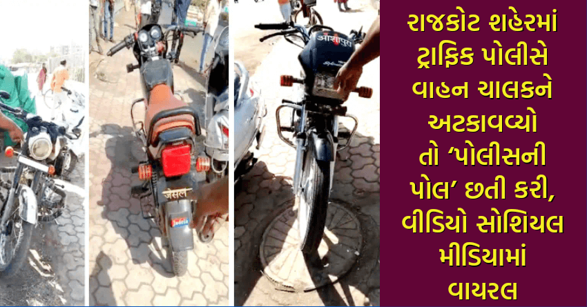 રાજકોટ શહેરમાં ટ્રાફિક પોલીસે વાહન ચાલકને અટકાવવ્યો તો ‘પોલીસની પોલ’ છતી કરી, વીડિયો સોશિયલ મીડિયામાં વાયરલ