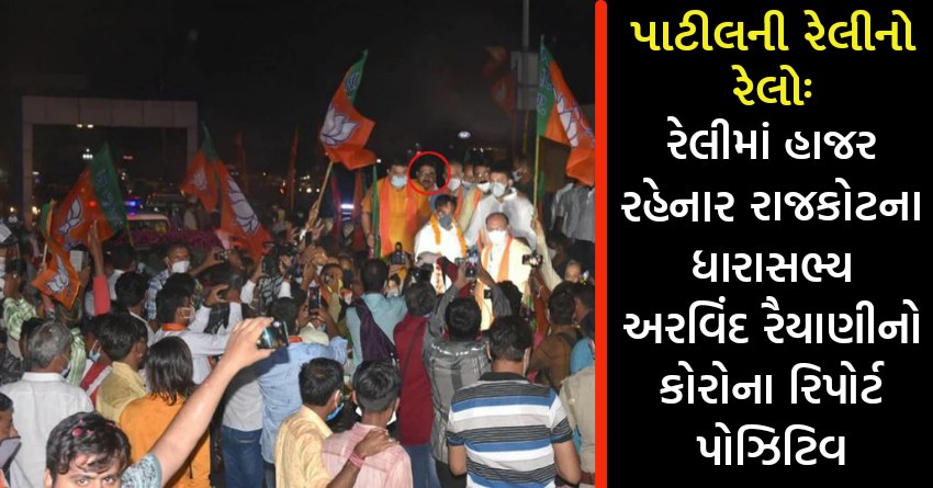 પાટીલની રેલીનો રેલોઃ રેલીમાં હાજર રહેનાર રાજકોટના ધારાસભ્ય અરવિંદ રૈયાણીનો કોરોના રિપોર્ટ પોઝિટિવ