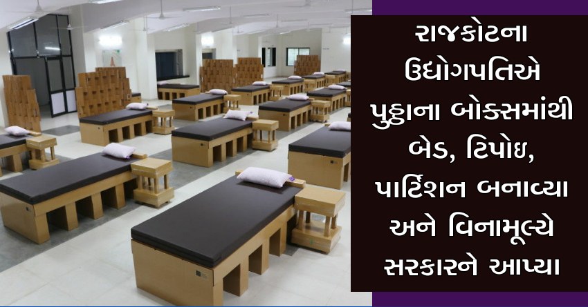રાજકોટના ઉદ્યોગપતિએ પુઠ્ઠાના બોક્સમાંથી બેડ, ટિપોઇ, પાર્ટિશન બનાવ્યા અને વિનામૂલ્યે સરકારને આપ્યા