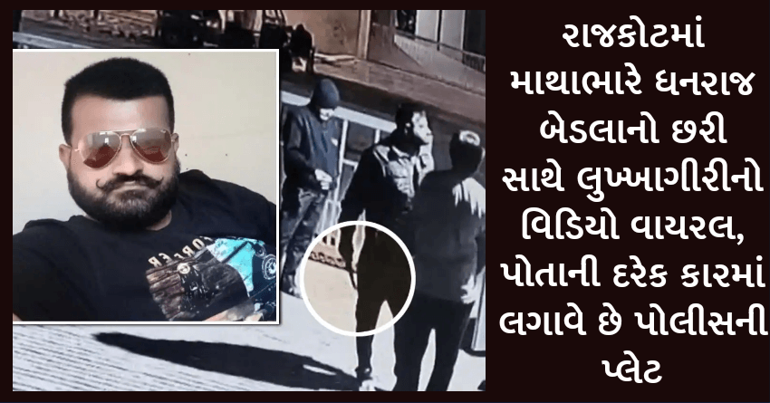 રાજકોટમાં માથાભારે ધનરાજ બેડલાનો છરી સાથે લુખ્ખાગીરીનો વિડિયો વાયરલ, પોતાની દરેક કારમાં લગાવે છે પોલીસની પ્લેટ