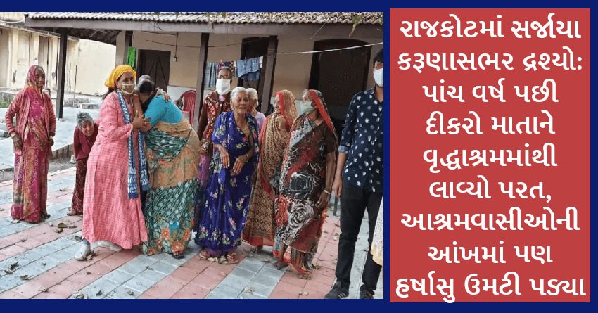 રાજકોટમાં સર્જાયા કરૂણાસભર દ્રશ્યો: પાંચ વર્ષ પછી દીકરો માતાને વૃદ્ધાશ્રમમાંથી લાવ્યો પરત, આશ્રમવાસીઓની આંખમાં પણ હર્ષાસુ ઉમટી પડ્યા