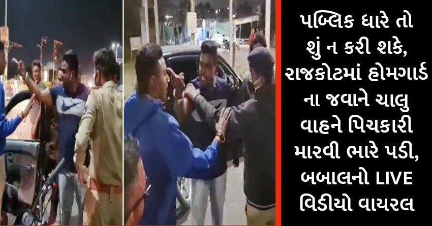 પબ્લિક ધારે તો શું ન કરી શકે, રાજકોટમાં હોમગાર્ડ ના જવાને ચાલુ વાહને પિચકારી મારવી પડી ભારે, બબાલનો LIVE વિડીયો વાયરલ