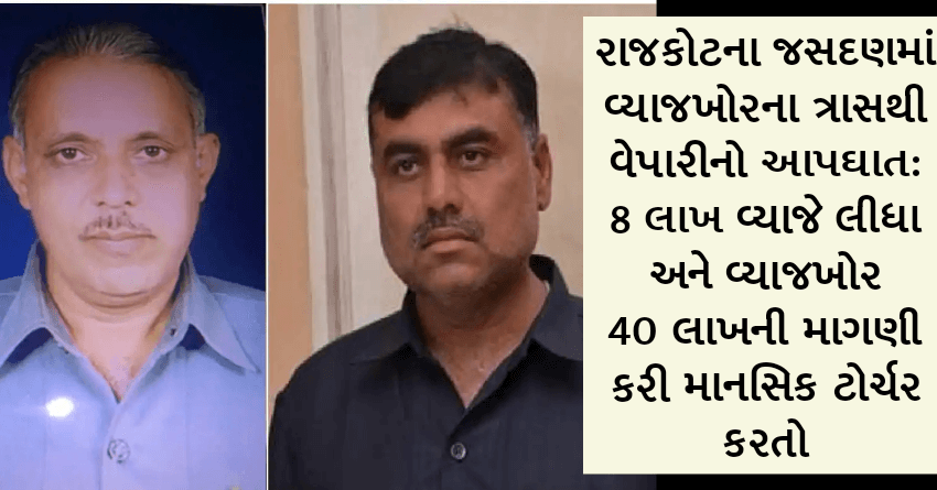 રાજકોટના જસદણમાં વ્યાજખોરના ત્રાસથી વેપારીનો આપઘાત: 8 લાખ વ્યાજે લીધા અને વ્યાજખોર 40 લાખની માગણી કરી માનસિક ટોર્ચર કરતો