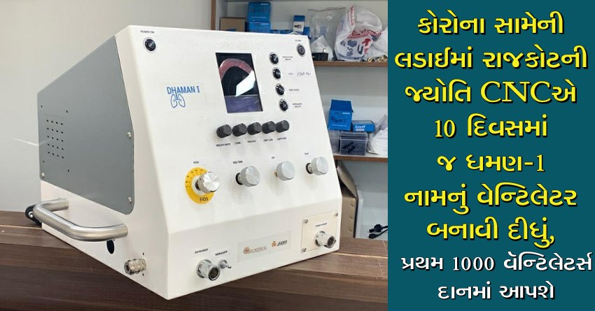 કોરોના સામેની લડાઈમાં રાજકોટની જ્યોતિ CNCએ 10 દિવસમાં જ ધમણ-1 નામનું વેન્ટિલેટર બનાવી દીધું, પ્રથમ 1000 વૅન્ટિલેટર્સ દાનમાં આપશે