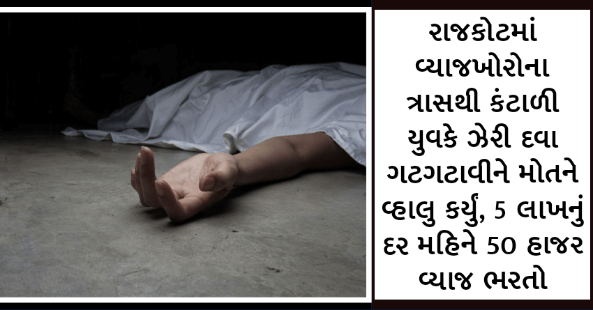 રાજકોટમાં વ્યાજખોરોના ત્રાસથી કંટાળી યુવકે ઝેરી દવા ગટગટાવીને મોતને વ્હાલુ કર્યું, 5 લાખનું દર મહિને 50 હાજર વ્યાજ ભરતો