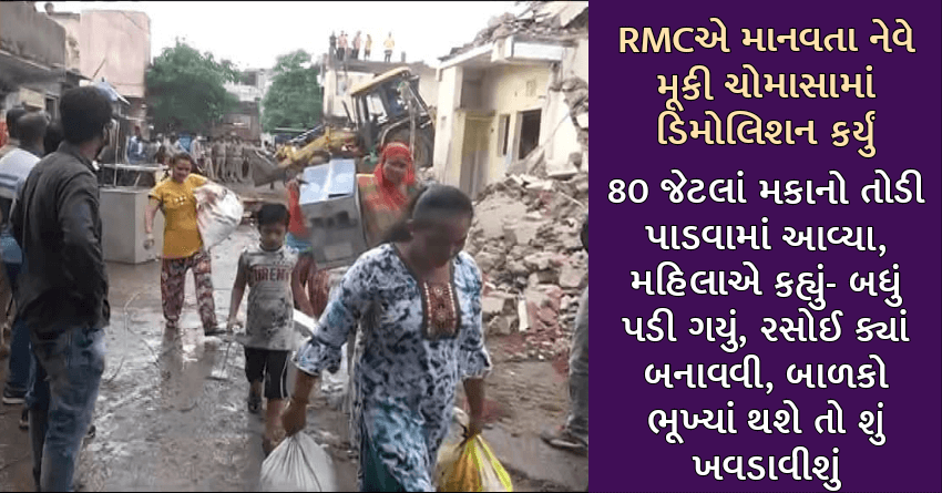 RMCએ માનવતા નેવે મૂકી ચોમાસામાં ડિમોલિશન કર્યું, 80 જેટલાં મકાનો તોડી પાડવામાં આવ્યા, મહિલાએ કહ્યું- બધું પડી ગયું, રસોઈ ક્યાં બનાવવી, બાળકો ભૂખ્યાં થશે તો શું ખવડાવીશું