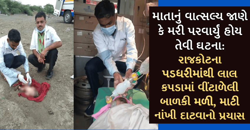 માતાનું વાત્સલ્ય જાણે કે મરી પરવાર્યું હોય તેવી ઘટના: રાજકોટના પડધરીમાંથી લાલ કપડામાં વીંટાળેલી બાળકી મળી, માટી નાંખી દાટવાનો પ્રયાસ