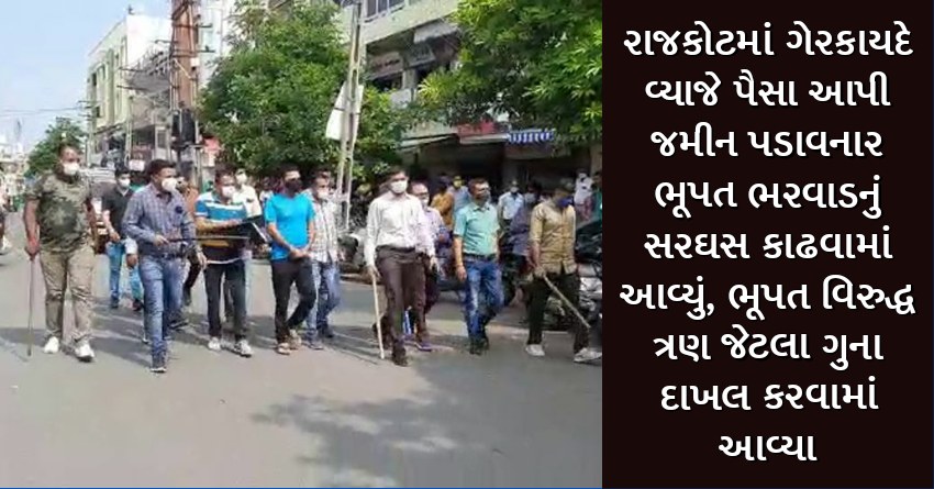 રાજકોટમાં ગેરકાયદે વ્યાજે પૈસા આપી જમીન પડાવનાર ભૂપત ભરવાડનું સરઘસ કાઢવામાં આવ્યું, ભૂપત વિરુદ્ધ ત્રણ જેટલા ગુના દાખલ કરવામાં આવ્યા