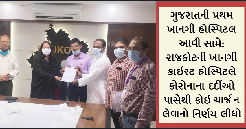 ગુજરાતની પ્રથમ ખાનગી હોસ્પિટલ આવી સામે: રાજકોટની ખાનગી ક્રાઇસ્ટ હોસ્પિટલે કોરોનાના દર્દીઓ પાસેથી કોઇ ચાર્જ ન લેવાનો નિર્ણય લીધો