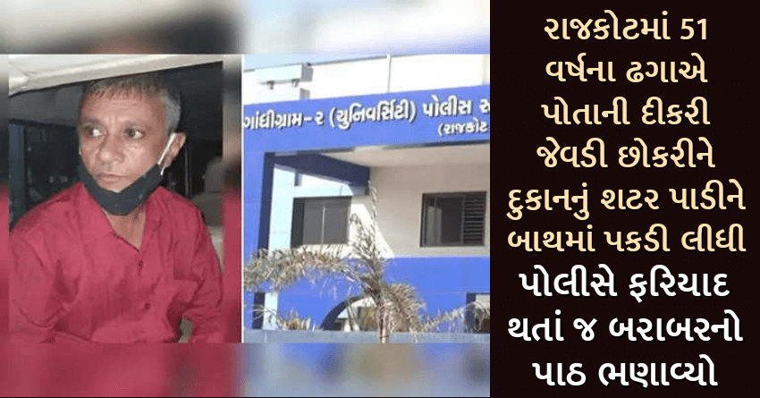 રાજકોટમાં 51 વર્ષના ઢગાએ પોતાની દીકરી જેવડી છોકરીને દુકાનનું શટર પાડીને બાથમાં પકડી લીધી. પોલીસે ફરિયાદ થતાં જ બરાબરનો પાઠ ભણાવ્યો
