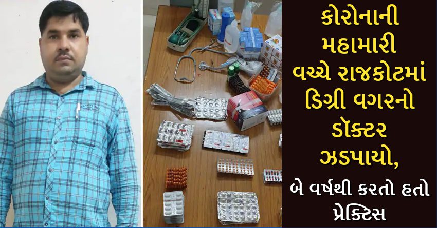 કોરોનાની મહામારી વચ્ચે રાજકોટમાં ડિગ્રી વગરનો ડૉક્ટર ઝડપાયો, બે વર્ષથી કરતો હતો પ્રેક્ટિસ