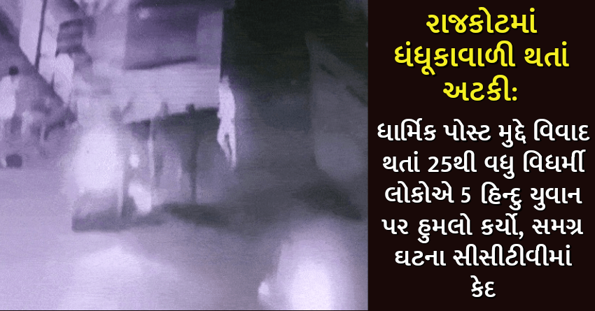 રાજકોટમાં ધંધૂકાવાળી થતાં અટકી: ધાર્મિક પોસ્ટ મુદ્દે વિવાદ થતાં 25થી વધુ વિધર્મી લોકોએ 5 હિન્દુ યુવાન પર હુમલો કર્યો, સમગ્ર ઘટના સીસીટીવીમાં કેદ
