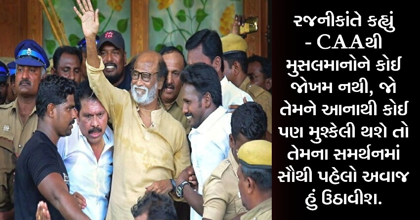 રજનીકાંતે કહ્યું – CAAથી મુસલમાનોને કોઈ જોખમ નથી, જો તેમને આનાથી કોઈ પણ મુશ્કેલી થશે તો તેમના સમર્થનમાં સૌથી પહેલો અવાજ હું ઉઠાવીશ.