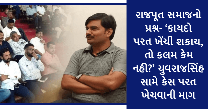 રાજપૂત સમાજનો પ્રશ્ન- ‘કાયદો પરત ખેંચી શકાય, તો કલમ કેમ નહી?’ યુવરાજસિંહ સામે કેસ પરત ખેચવાની માગ