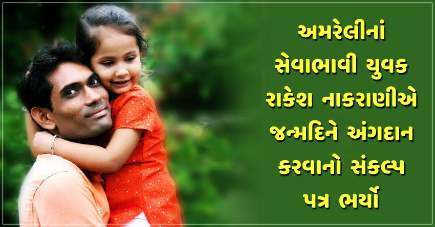 અમરેલીનાં સેવાભાવી યુવક રાકેશ નાકરાણીએ જન્મદિને અંગદાન કરવાનો સંકલ્પ પત્ર ભર્યો