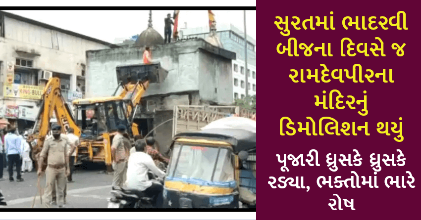 સુરતમાં ભાદરવી બીજના દિવસે જ રામદેવપીરના મંદિરનું ડિમોલિશન થયું, પૂજારી ધ્રુસકે ધ્રુસકે રડ્યા, ભક્તોમાં ભારે રોષ