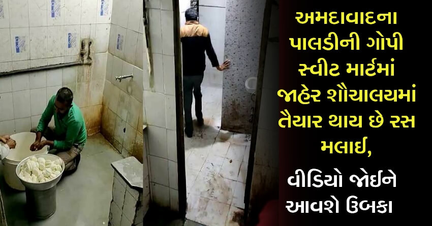 અમદાવાદના પાલડીની ગોપી સ્વીટ માર્ટમાં જાહેર શૌચાલયમાં તૈયાર થાય છે રસ મલાઈ, વીડિયો જોઈને આવશે ઉબકા