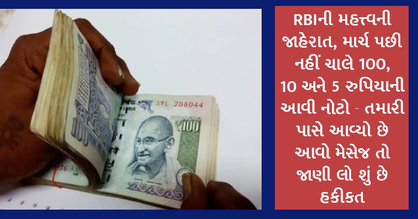 તાજેતરમાં એવા અહેવાલ વહેતા થયા હતા કે માર્ચ, એપ્રિલ પછી 100, 10 અને 5ની જૂની નોટો ચલણમાં નહીં રહે. આ જાણકારી રિઝર્વ બેંક ઑફ ઇન્ડિયાના જનરલ મેનેજર બી મહેશે આપી હોવાનો દાવો કરવામાં આવ્યો હતો. દાવો કરવામાં આવ્યો હતો કે આરબીઆઈ જૂની નોટોની સીરિઝ પરત લેવાની યોજના પર કામ કરી રહી છે. ઉલ્લેખનીય છે કે વર્ષ 2016માં સરકારે એકાએક 500 અને 1000 રુપિયાની જૂની નોટો બંધ (demonetization)કરી દીધી હતી, જેનાથી અફરાતફરી મચી હતી. 100,10 અને પાંચ રૂપિયાની જૂની નોટો બંધ થવાના અહેવાલ બાદ પણ લોકોમાં થોડો ફફડાટ જોવા મળ્યો હતો.