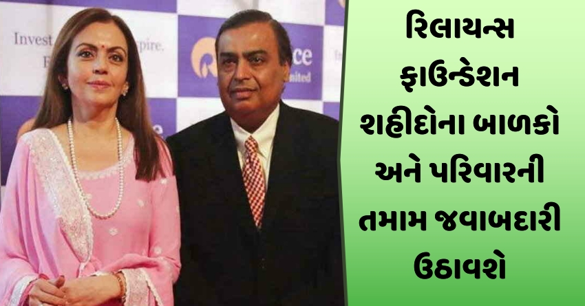 રિલાયન્સ ફાઉન્ડેશન શહીદોના બાળકો અને પરિવારની તમામ જવાબદારી ઉઠાવશે