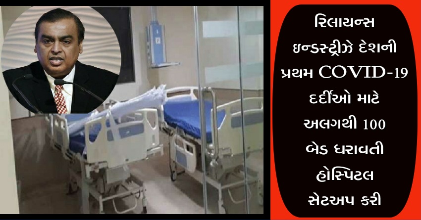 રિલાયન્સ ઇન્ડસ્ટ્રીઝે દેશની પ્રથમ COVID-19 દર્દીઓ માટે અલગથી 100 બેડ ધરાવતી હોસ્પિટલ સેટઅપ કરી