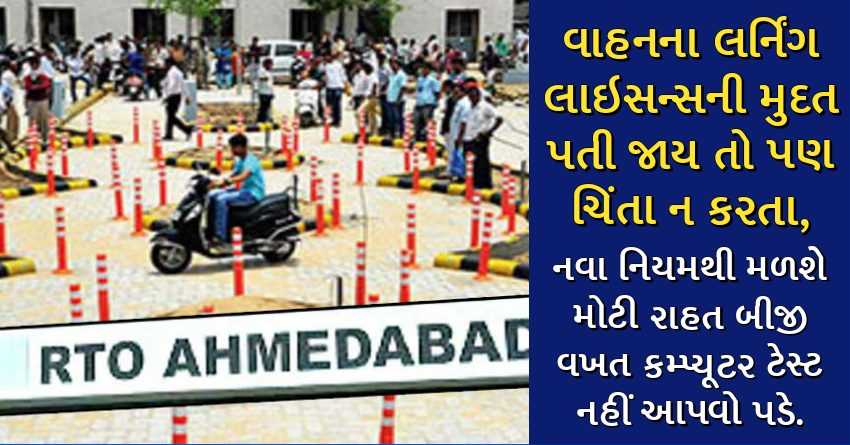 લર્નિંગ લાઇસન્સ ધારકો માટે રાહતના સમાચાર છે કારણ કે હવેથી લર્નિંગ લાઇસન્સ છ મહિના બાદ એક્સપાયર થઈ જાય તો ઉમેદવારે ફરીથી કમ્પ્યૂટર ટેસ્ટ આપવો નહીં પડે.