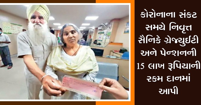 કોરોનાના સંકટ સમયે નિવૃત્ત સૈનિકે ગ્રેજ્યુઈટી અને પેન્શનની 15 લાખ રૂપિયાની રકમ દાનમાં આપી