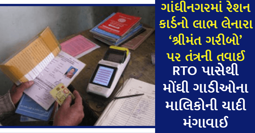 ગાંધીનગરમાં રેશન કાર્ડનો લાભ લેનારા ‘શ્રીમંત ગરીબો’ પર તંત્રની તવાઈ, RTO પાસેથી મોંઘી ગાડીઓના માલિકોની યાદી મંગાવાઈ