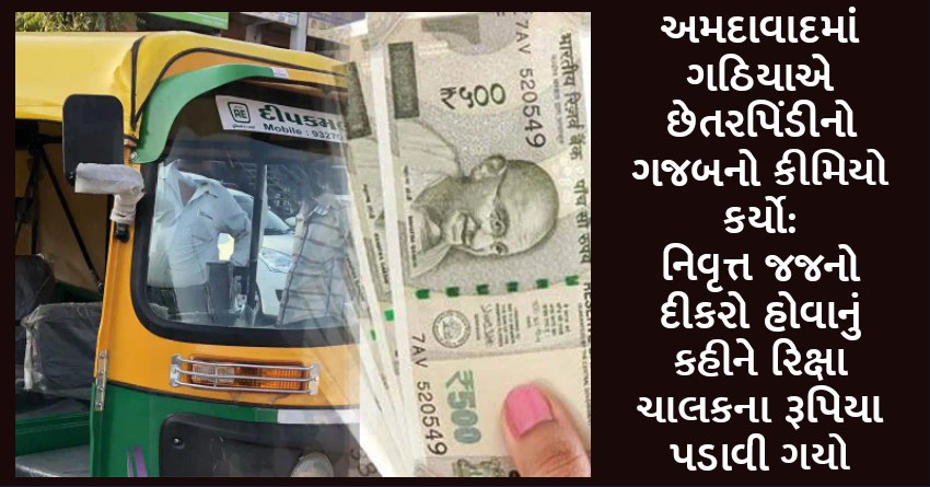 અમદાવાદમાં ગઠિયાએ છેતરપિંડીનો ગજબનો કીમિયો કર્યો: નિવૃત્ત જજનો દીકરો હોવાનું કહીને રિક્ષા ચાલકના રૂપિયા પડાવી ગયો