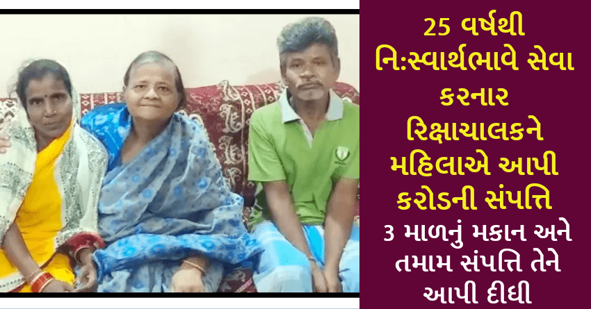 25 વર્ષથી નિ:સ્વાર્થભાવે સેવા કરનાર રિક્ષાચાલકને મહિલાએ આપી કરોડની સંપત્તિ, 3 માળનું મકાન અને તમામ સંપત્તિ તેને આપી દીધી