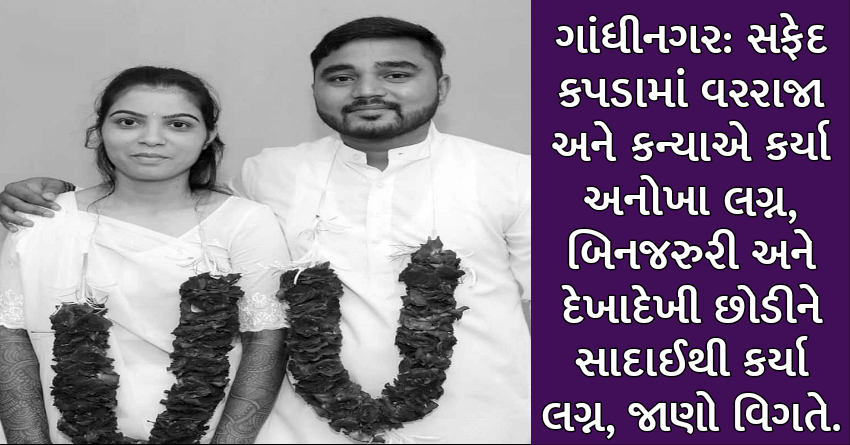 ગાંધીનગર: સફેદ કપડામાં વરરાજા અને કન્યાએ કર્યા અનોખા લગ્ન, બિનજરુરી અને દેખાદેખી છોડીને સાદાઈથી કર્યા લગ્ન, જાણો વિગતે.
