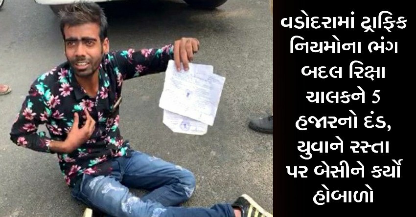 વડોદરામાં ટ્રાફિક નિયમોના ભંગ બદલ રિક્ષા ચાલકને 5 હજારનો દંડ, યુવાને રસ્તા પર બેસીને કર્યો હોબાળો