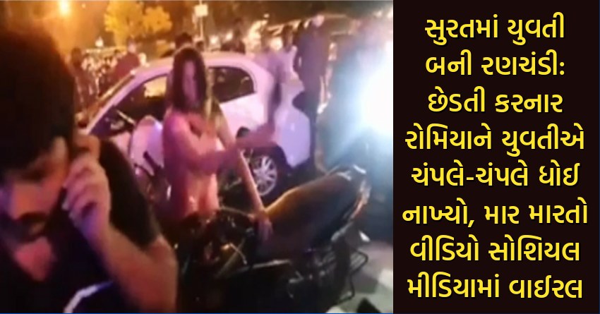 સુરતમાં યુવતી બની રણચંડી: છેડતી કરનાર રોમિયાને યુવતીએ ચંપલે-ચંપલે ધોઈ નાખ્યો, માર મારતો વીડિયો સોશિયલ મીડિયામાં વાઈરલ