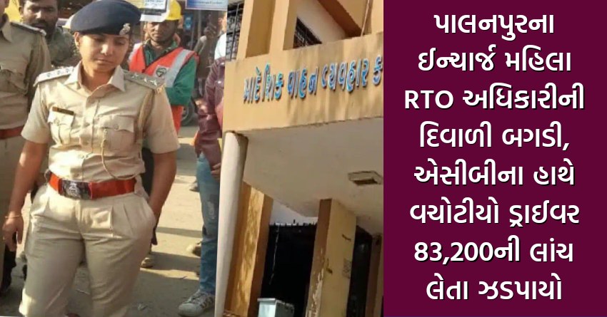 પાલનપુરના ઈન્ચાર્જ મહિલા RTO અધિકારીની દિવાળી બગડી, એસીબીના હાથે વચોટીયો ડ્રાઈવર 83,200ની લાંચ લેતા ઝડપાયો